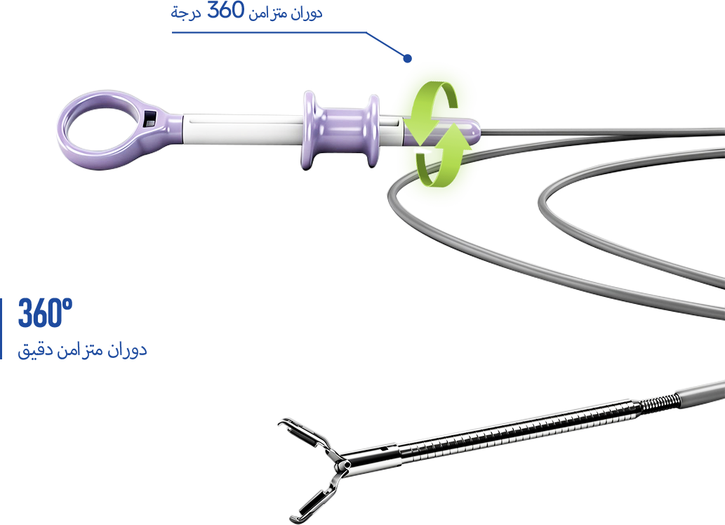 بناءً على ملقط أخذ العينات الحية القابل للتصرف العادي، قمنا بتطوير ملقط أخذ عينات حي دوار حصري ومبتكر قابل للتصرف، يمكنه الدوران بدقة وبشكل متزامن بزاوية 360 درجة؛ حيث يحل هذه النقاط الميتة في زوايا أخذ العينات المختلفة أثناء العملية، مما يعزز بشكل كبير من كفاءة الأطباء والعمليات الجراحية. في الوقت نفسه، تتمتع ملاقط الأجسام الغريبة القابلة للتصرف، والمقاصات الكهربائية القابلة للتصرف، والملاقط الحية الساخنة القابلة للتصرف التي تم إطلاقها على هذا الأساس جميعها بوظيفة الدوران المتزامن.